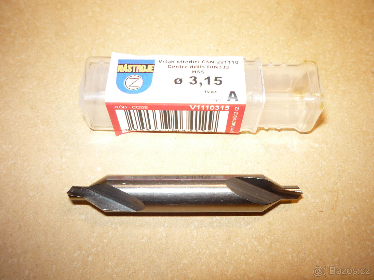 Cena: V textu. Vrták středící - navrtávak : 221110 , A 1 , 23 ks , cena 45,00 Kč/ks 221110 , A 1,6 , 20 ks , cena 47,00 Kč/ks 221110 , A 2 , 26 ks , cena 52,00 Kč/ks 221110 , A 2,5 , 22 ks , cena 58,00 Kč/ks 221110 , A3,15 , 34 ks , cena 71,00 Kč/ks 221110 , A 4 , 13 ks , cena 107,00 Kč/ks 221110 , A 5 , 24 ks , cena 143,00 Kč/ks 221110 , A 6,3 , 10 ks , cena 230,00 Kč/ks 221110 , A8 , 2 ks , cena 442,00 Kč/ks . 221112 , B2,5 , 17 ks , cena 26,00 Kč/ks . 221114 levý , A 0,5 , 55 ks , cena 6,00 Kč/ks 221114 levý , A 0,63 , 72 ks , cena 6,00 Kč/ks 221114 levý , A 0,8 , 146 ks , cena 6,00 Kč/ks . NC navrtávak HSS : 221185 HSS , 14 90st. , 23 ks , cena 104,00 Kč/ks . NC navrtávak TK : NC navrtávak TK , 12 K10/K20 120st. , 17 ks , cena 156,00 Kč/ks NC navrtávak TK , 16 120st. , 3 ks , cena 312,00 Kč/ks . Viz také ostatní mé nabídky Prosím volat +420721418459