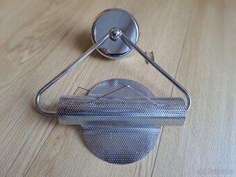 Prodám designové svítidlo na stěnu. Chromovaná kovová konstrukce a perforované kovové stínidlo. Společně s jednou novou žárovkou (patice r7s). Rozměry: délka (od stěny) 17 cm, šířka krytu přívodu elektřiny 11 cm. K předání na Praze 5 – Barrandov.
